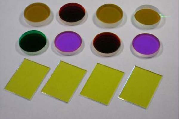 濾光片是塑料或玻璃片再加入特種染料做成的。玻璃片的透射率原本與空氣差不多,所有有色光都可以通過,所以是透明的,但是染了染料后,分子結構變化,折射率也發生變化,對某些色光的通過就有變化了。比如一束白光通過藍色濾光片,射出的是一束藍光,而綠光、紅光極少,大多數被濾光片吸收了。