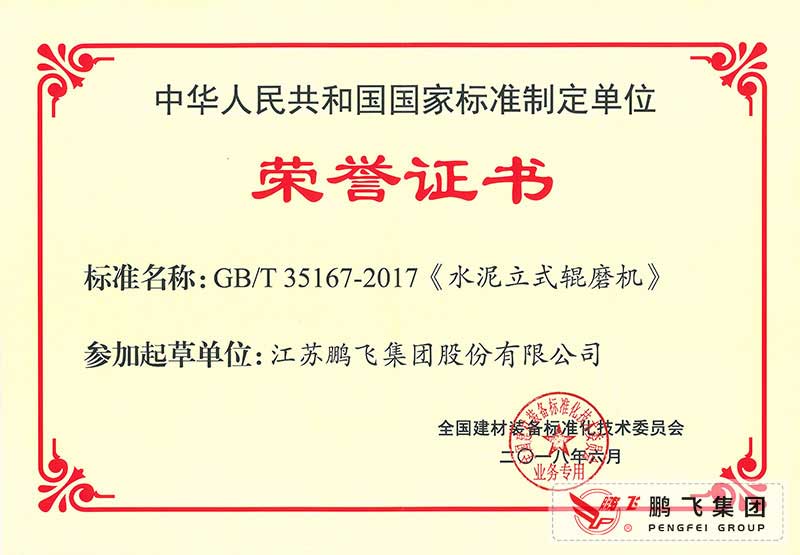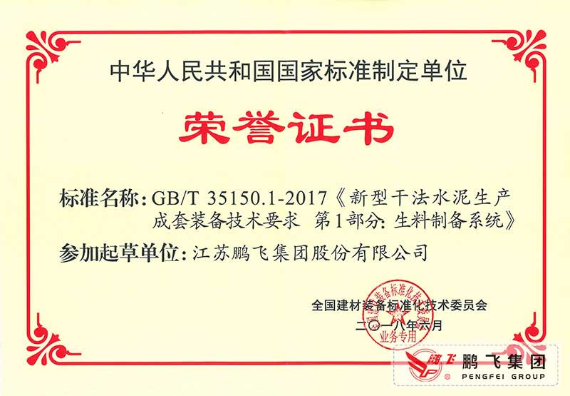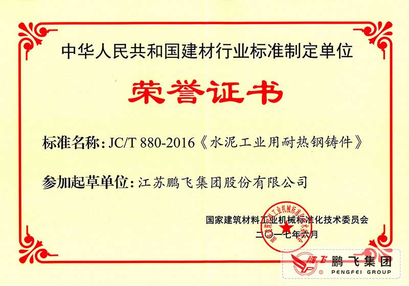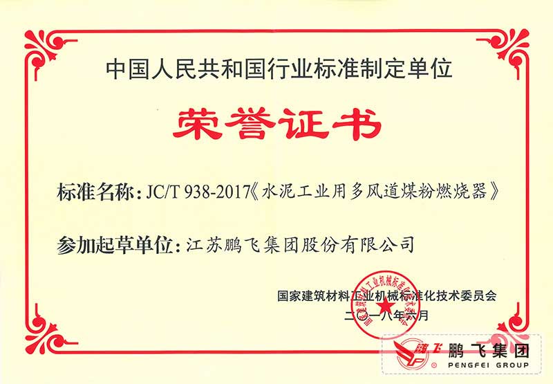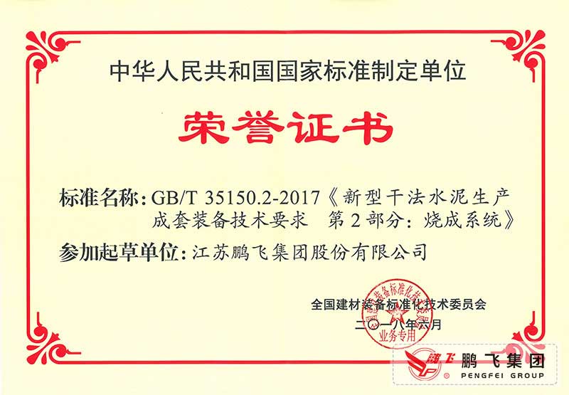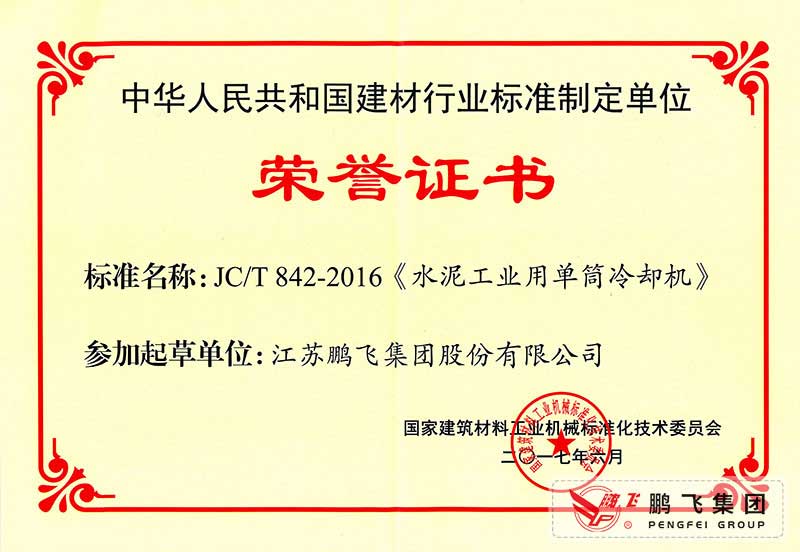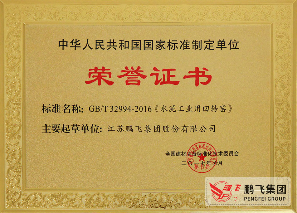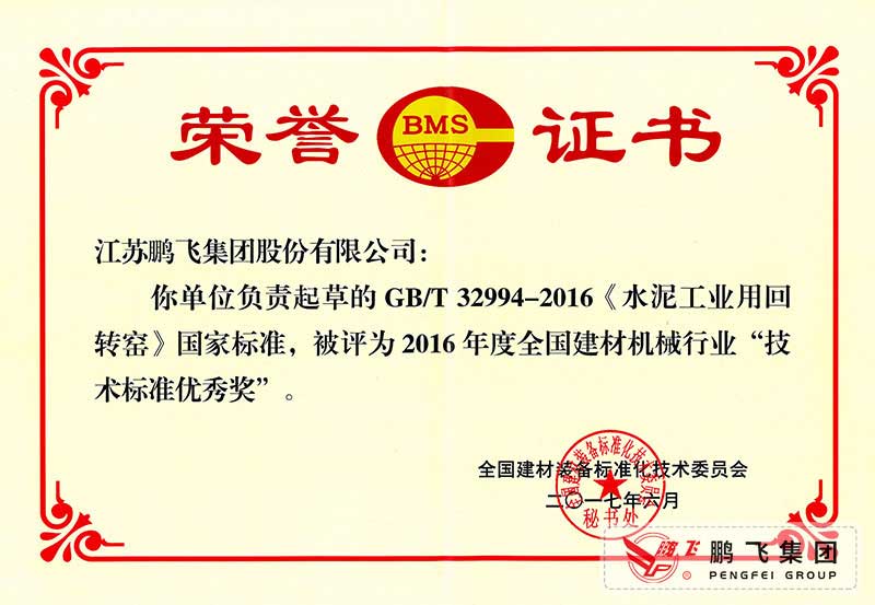 (2017年6月21)回轉窯國標起草證書技術標準優(yōu)秀獎