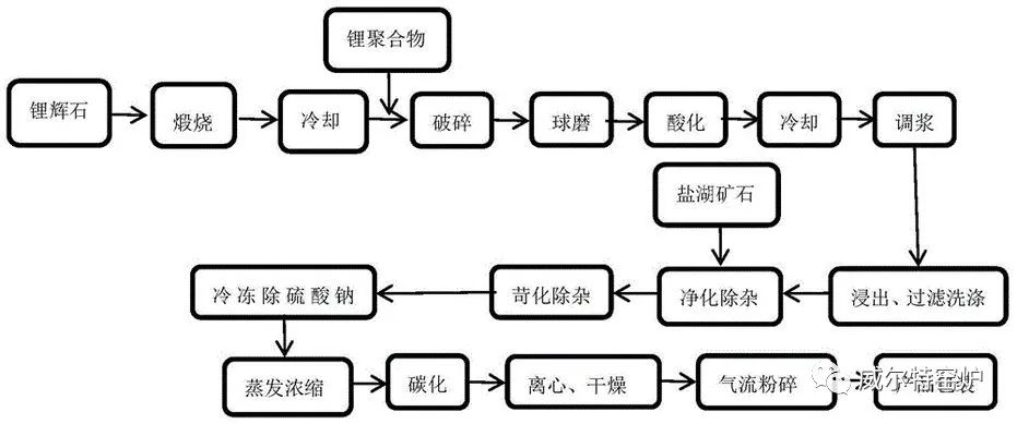 1、碳酸鋰生產工藝流程-硫酸法生產工藝流程介紹: